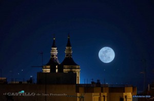 La Luna Azul se deja ver en San Fernando junto a las torres gemelas de la Iglesia Mayor