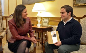 El concejal de Presidencia y Política Digital, Conrado Rodríguez, acompañó a la alcaldesa en la recepción en la que Rafael Guirado agradeció el obsequio acompañado de sus padres y hermana.