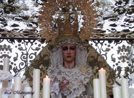 Y la autoría -de la preciosa imagen- que por cierto nos produce contemplar la figura sutil de la Santísima Virgen del Amor, corresponde al mismo autor del Cristo, Antonio Joaquín Dubé de Luque, hecha también en madera de caoba midiendo 1,70 centímetros de altura. Genial obra que realizó en 1978. Es decir el año siguiente a la del Señor, aunque hay quien la sitúa en el mismo año. Pero en cualquiera de los casos. Lo cierto es que nos impacta en su Paso de Palio por su impronta serena y sosegada; pero mirando con todo su amor y a su vez con el dolor inmenso de toda Madre puesto en su Hijo, mientras disimula el suyo propio, haciendo honor al lema de esta Venerable Hermandad Sacramental: ‘Amor omnia posum’. Es decir: el amor todo lo puede.