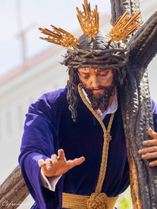 Viene como su hermandad hermana del Gran Poder, de su sede canónica, la parroquia de la Sagrada Familia en la muy singular barriada periférica de la Bazán. Y Jesús en su largo caminar hasta llegar al centro, se ha caído tres veces, aunque se levanta y camina. Y camina dolorido, pero con la certeza de ser aclamado y arropado por sus fieles y seguidores de esta Isla tan cofrade y de sus hermanos que les acompañan en pública protestación de fe por nuestras calles en todo su largo recorrido; ofreciéndole no sólo una devota penitencia, sino escenificando y dando vida al doloroso itinerario del Vía Crucis sufrido por nuestro Padre y Señor.