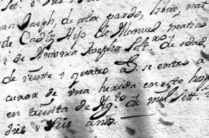 Ap. 1: Ingreso de un cautivo en San Juan de Dios. AHSCCa, libro nº 26 (1711-1717) de ingresos de enfermos, p. 80.
