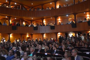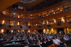 En cuarto lugar, Miguel Ángel Vázquez de la Consejería de Cultura. “Buenas tardes, agradecer a Dolores Montoya Chispa, que nos acompaña desde las alturas del Real Teatro de Las Cortes, a la alcaldesa, a la Presidenta Diputación y Joaquín responsable de Canal Sur, amigos y amigas, es un placer hoy estar aquí en el preestreno del documental en la tierra de Camarón. Un documental que nos acerca a la figura, al legado, a la leyenda, de un artista único, un artista universal. Camarón sin lugar a duda se merece este documental y seguramente muchos más, es merecedor de este documental, porque gracias a él, la historia del flamenco cambió, hay un antes y un después a partir de Camarón. Abrió los caminos que luego otros siguieron y desde luego su aportación hizo que el flamenco sea ahora más grande, otra forma de entenderlo desde la tradición pero innovando, por eso el título ‘Camarón, Flamenco y Revolución’. Camarón revolucionando desde los cimientos el flamenco, haciendo un flamenco que además de fascinar a los aficionados ya existentes creó un nuevo público que se acercaron al flamenco para escucharlo, para sentirlo, para vibrar con el flamenco, para amar el flamenco. Camarón abrió puertas, derribó fronteras y también contribuyó a que este arte único, el cante jondo de Andalucía, sea hoy Patrimonio Inmaterial de toda la Humanidad y lógicamente la relevancia de una figura como Camarón se merece que cuente con un museo que recoja su figura y los contenidos de su obra y también su legado. Museo que es fruto de la colaboración de las instituciones, cuando colaboramos llegamos más lejos en este caso el Museo de Camarón, trabajo conjunto del Ayuntamiento de San Fernando. Liderado por su incansable alcaldesa, qué mérito de alcaldesa, qué orgullo de alcaldesa, qué lujo de alcaldesa para una ciudad como San Fernando. Y que junto a la Junta Andalucía, con la Consejería de Cultura, estamos haciendo posible ese sueño, un sueño que dentro de poco va a ser una realidad. Solo me queda felicitar a todo el equipo que ha hecho posible este trabajo, empezando por su director un algecireño, que como el flamenco triunfa internacionalmente, Alexis Morante enhorabuena, y a todos los que han participado en esta obra y muy especialmente, y lo tengo que decir a nuestro Canal Sur, que apuesta una vez más por el flamenco. Sin lugar a duda productos como este son necesarios, por que ayudan a difundir la imagen y la marca de Camarón, una marca imbatible, pero también porque permite difundir la riqueza del flamenco, flamenco que es seña de identidad, Patrimonio Cultural de Andalucía y de San Fernando gracias”.