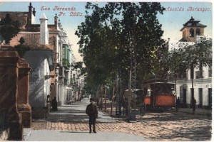 Foto antigua de la Calle Real a la altura de La Alameda con su antiguo arbolado.