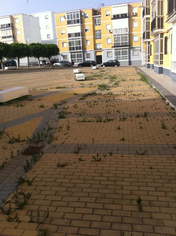 La hierba destaca en la plaza desde hace días.