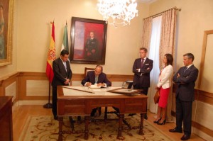 Alejo Vidal-Quadras firma en el libro de honor del Ayuntamiento isleño