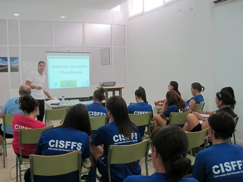 En la tarde del pasado martes la plantilla femenina del Isleño San Fernando FS pudo disfrutar de una amena charla sobre nutrición deportiva, gracias a la colaboración de Domingo Luna, un gran profesional de la Educación Física y la Nutrición.