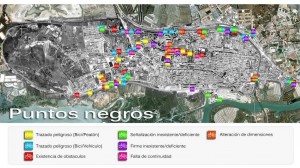 El PSOE hace un mapa de puntos negros del carril bici, con zonas de riesgo para los ciclistas
