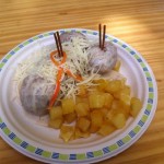 Albóndiguitas a los tres quesos fué la tapa estrella del "Rincón de Javi" en la pasada Feria de la Tapa . Aquí  destacamos su textura y mezcla de sabores y su presentación .Sigue Javi con una cocina que fusiona lo tradicional con innovación constante.Se sirvió acompañadas de patatas en daditos y ralladura de queso consiguiendo una buena asociación.Buena tapa Javi!