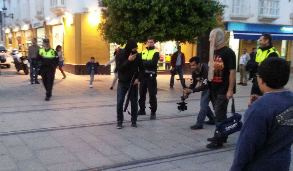 Muchos isleños han quedado sorprendidos entre la jornada dominical y esta tarde cuando dos jóvenes encapuchados o ataviados con medias para desfigurar su rostro salían corriendo de la floristería Real, en plena calle Real, frente al colegio La Salle con metrallestas o armas simuladas en la mano. La presencia policial hizo temer lo peor para muchos viandantes, algunos de los cuáles sintieron temor y huían del lugar, mientras otros curiosos seguían paso a paso las escenas, a sabiendas de que se trataba de un rodaje.