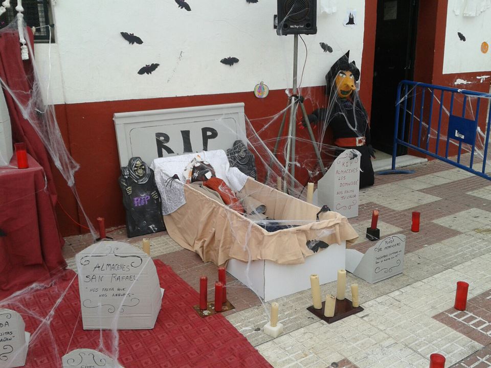 La Barriada Bazán,celebrará esta noche de todos los santos o difuntos de una forma muy peculiar, ya que en su decoración,  han fabricado lápidas con los nombres de comercios y negocios de la Isla ya desaparecidos.El decorado ha sido realizado por los niños del barrio junto con las mujeres y la propia directiva, con ello quieren hacer ver el gran problema económico que tenemos en la actualidad y sensibilizar así a las administraciones.Ademas  no podemos olvidar que la Barriada Bazán es uno de los barrios más castigado por el desempleo en la Isla.Truco o Trato?