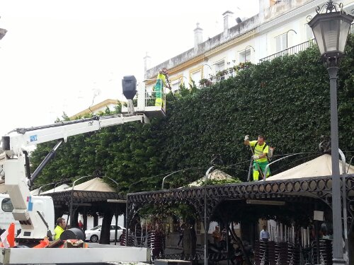 El delegado explica que ya se han realizado tareas de poda en la calle Real, la Plaza Emperador Carlos, el Parque de la Almadraba, la Plaza del Rey, La Plaza del Carmen, la Alameda Moreno de Guerra, la barriada Bazán, la barriada Urbis, la barriada de La Noria,  la Calle Velarde, la Calle Escorial y en diversas rotondas.