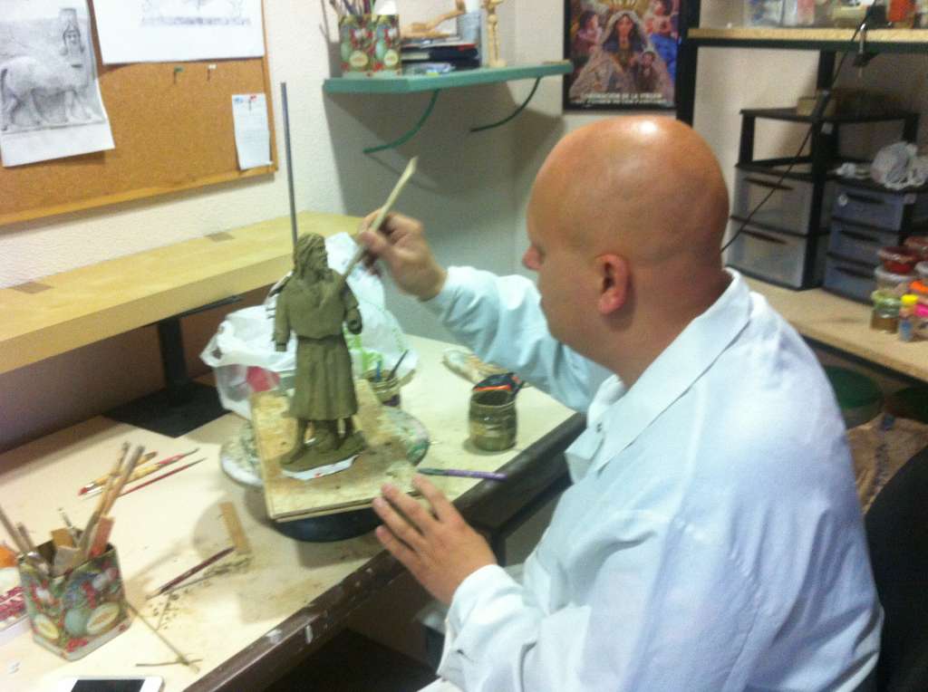 De esta manera pillamos a Juan Antonio Jardines Nodal,reconocido artesano belenista isleño,trabajando en su última obra, un pastor al que poco a poco va dando forma y que formará parte del próximo Belén de la Asociación de Belenistas de San Fernando.Un artista!