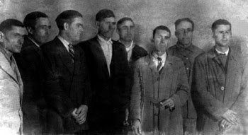 De todos es conocido el nombre de Nicolás Carrillo(en la foto el de las manos cruzadas de la izquierda). No aporto nada nuevo si afirmo que capitaneó la cuadrilla de cargadores más numerosa y relevante en su época, sacando la mayoría de las cofradías de la Isla. La indiscutible importancia de su figura y la de sus cargadores ha sido exaltada en multitud de pregones, homenajes, artículos, concursos de saetas, e incluso su nombre rotula una de las calles de nuestra ciudad, rozando la Iglesia Mayor, aquella que vio como durante décadas sacaba la mayoría de los Pasos que en ella residen.