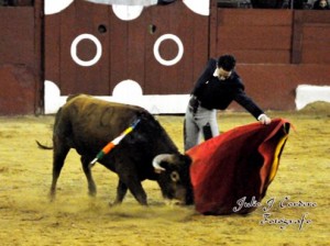 La sorpresa agradable de la tarde la dio el aun novillero sin picadores perteneciente a la escuela de tauromaquia de El Puerto de Santa Maria Fernandez Ramos. El joven novillero derrochó clase y saber estar, lanceando a un gran nivel con el capote, derrochando toreria y gusto con la muleta. Lo mató de dos pinchazos y estocada. Dos orejas.