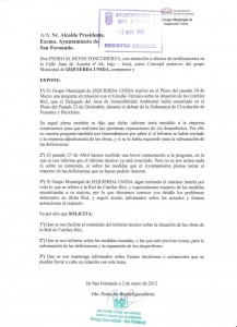 En el Pleno del mes de marzo IU preguntó si el informe estaba ya terminado y si era posible conocer su contenido. Un mes después, el 27 de abril recibió como respuesta que ya esta redactado el informe. En consecuencia, pocos días después presentó un escrito pidiendo ver el citado informe y ser informados por las medidas que se estaban tomando, y como respuesta, recibió a primeros de mayo, que el escrito había sido remitido al Área correspondiente.