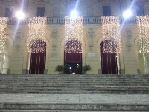 Actual imagen del Ayuntamiento con iluminación navideña.