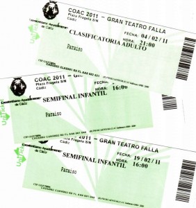 Esta mañana ha tenido lugar el sorteo de las entradas de la Gran Final del Concurso Oficial de Agrupaciones Carnavalescas (COAC) 2013, que se celebrará el próximo viernes 8 de febrero, en el Gran Teatro Falla. En total se habían registrado un total de 17.434 solicitudes. Vea aquí los nombres agraciados.