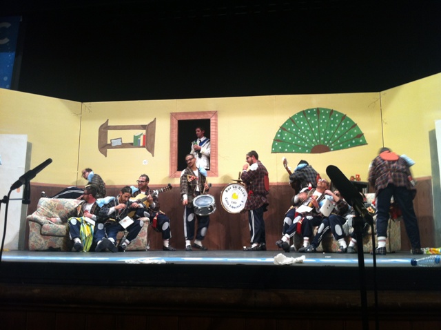 Es una alegría la vuelta de comparsas como esta. Ocupan el escenario como nadie, cantan con fuerza. Dos buenas letras de pasodobles, cuplés normalitos tirando a flojos. Van de más a menos, finalizando con un popurrí, algo insípido.