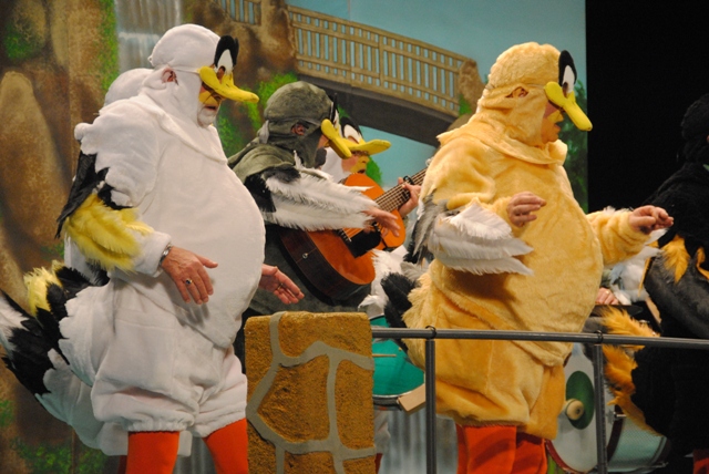 Ataviados como los patos del parque genovés, llegan los abuelos de del centro de día de la calle Zarag Primer pasodoble metido en el tipo, al asesinato de los niños cordobeses Ruth y josé, quemados en una hoguera por el padre, para el que piden que se pudra en la cárcel y no salgan más, encarnado en la figura de dos patitos. Segundo a la alcaldesa de Cádiz, a la que, después del Bicentenario, que no ha solucionado el paro ni la crisis, instan a que le diga a su presidente que Cádiz existe y vive olvidada en la miseria. Cuplé el primero a los piques que están tan de moda en actuaciones entre agrupaciones, pero ellos le echan, por su edad, el pique al tanatorio, y segundo al Rey Juan Carlos y sus traspiés, no muy bien rematado. Estribillo soso al tipo. Popurrí en el que se recurre demasiado al bastinazo y se hace monótono en determinados momentos.