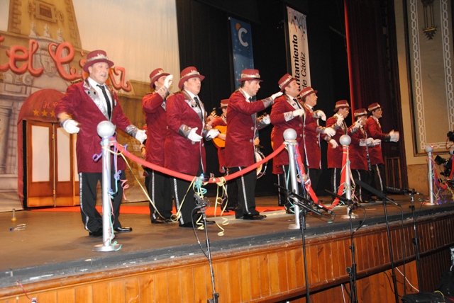 Buena actuación la que efectúa este grupo en su pase por preliminares, de más a menos. No desentonan en ningún momento, abusando en determinados momentos de las voces, lo que hace que suene chillado, en cuanto a repertorio, buenas letras de pasodoble, flojos cuplés y popurrí flojo