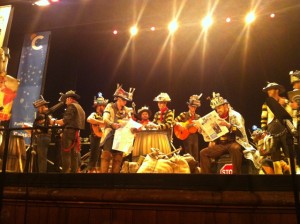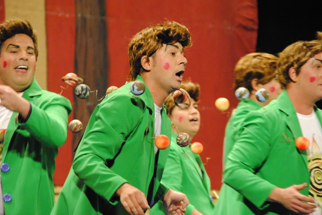 Han nacido los mejores en todo, los planetas giran en torno a el, representan chavales presumidos y algo egocéntricos, narcisistas, como nos van relatando en su presentación, que no tiene mucha gracia, aunque si ritmo. En el primero va la cosa de la profecía de los mayas sobre el fin del mundo, no es esa la que acabe con el mundo, si no todos los canallas que la están hundiendo, aquellos que a pesar de eso viven a cuerpo de rey, no temen que el mundo acabe, mas bien, que nunca cambie. Los catalanes quieren independencia, reza el segundo, pero no acosta de hundir a un pueblo como el andaluz, que también tiene su historia y su bandera, sólo quieren independencia si no se habla de subvenciones ni ayudas, les instan a que se busquen una isla, se independicen y claven su señera. Cuplé de total actualidad el primero, donde son ellos los que le han dado las ideas a muchas de las agrupaciones que ya han pasado por el concurso, Aragón, Vera, e incluso lo de la flauta del coro que les precede, segundo a los ahorros que hacen en la compra, incluso las naranjas que se las ahorran porque tienen un familiar policía local, buenos los cuplés.