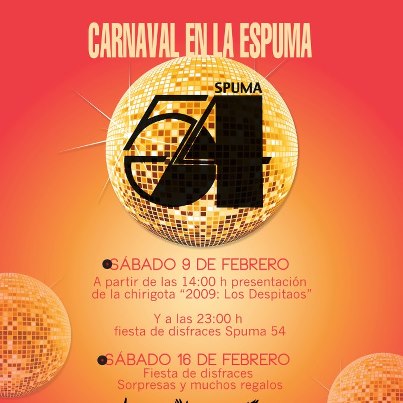 El Bar la Espuma, ese mismo día a las 23.00h, tendrá lugar “La fiesta de disfraces Spuma 54” invitando a todo el que  le guste los años 70, se disfrace, disfrute y gane muchos premios.
