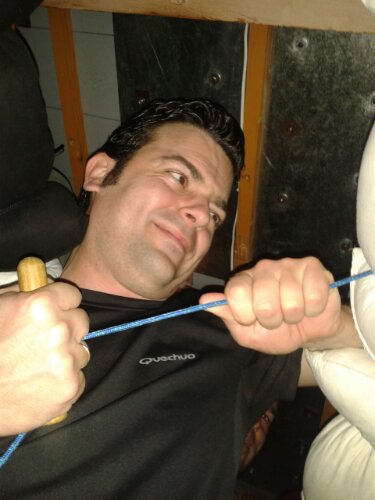 en plena faena de amarre pensando si será para procesionar o se quedará sólo para el traslado.Esperemos que no.