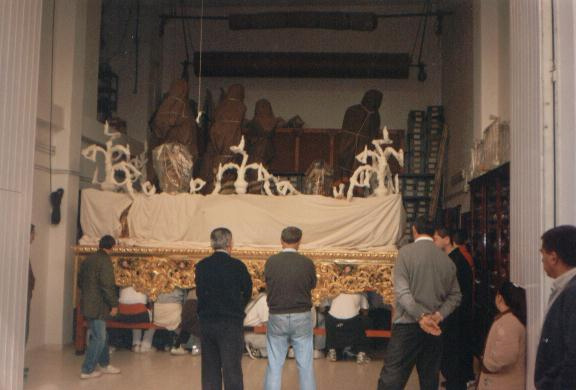 Y llegaba el día del Pregón en el teatro de las Cortes, única oportunidad de escuchar una banda antes de las procesiones -años más tarde llegaría el Concierto de la JCC que sería el otro único concierto durante varios años – y allí estaba Agripino al mando de sus Cruz Roja y que siempre tocaba Amargura.Y la semana anterior, la de las “maeras” que si veías alguna eras un afortunado y se hacían en el más absoluto secretismo y casi a escondidas – igual que ahora que hasta se anuncian los traslados por internet y en alguno, hay mas gente que en la propia salida de la hermandad- ya sólo esperabas que abriera la Iglesia para ir a ver los pasos.