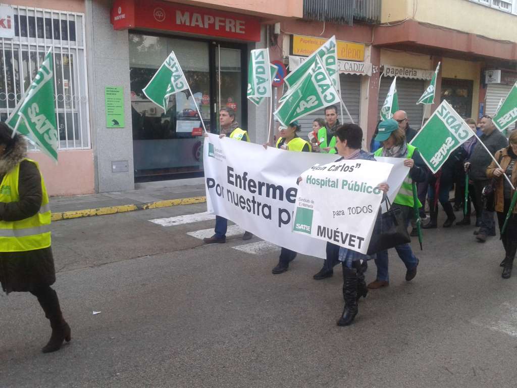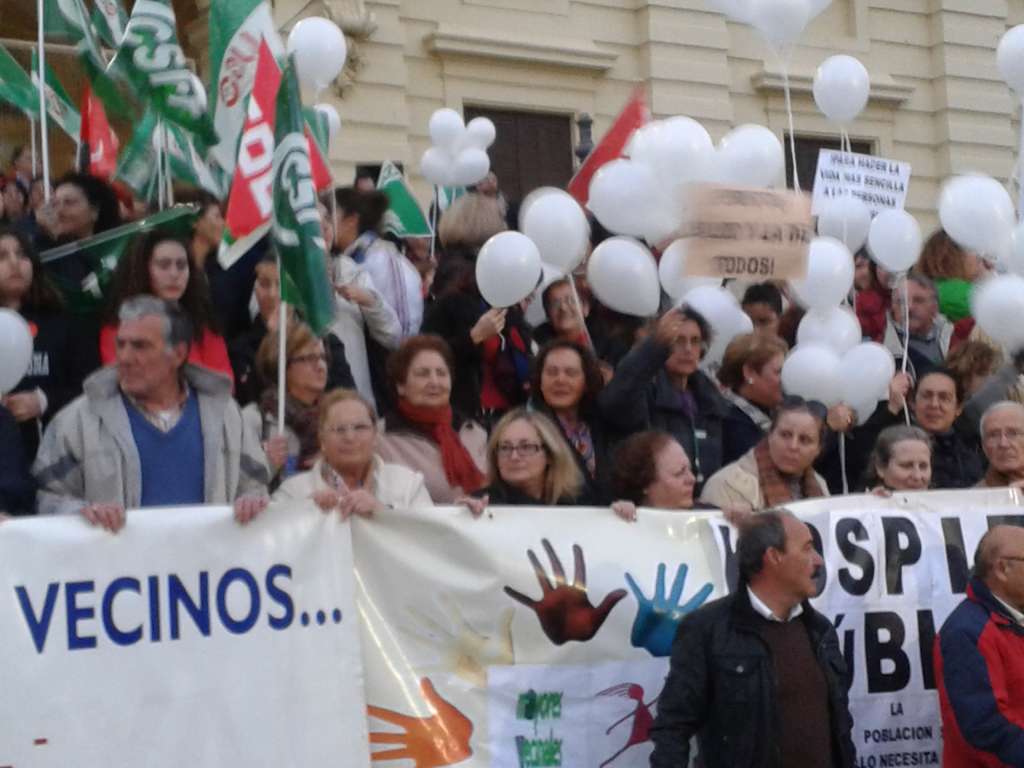 Pudimos ver pancartas de todos los partidos asociaciones, federaciones ,del colegio médico, de enfermería y a los afectados por Delphi y Navantia, que se solidarizaron como uno más en esta manifestación. Ayer dejó San Fernando de ser una ciudad apática en este tipo de reclamaciones y a esta manifestación histórica, sólo la superó la de Bazán en 2004. Había cierta incertidumbre en la convocatoria por el mal tiempo reinante durante todo el día, pero hasta la meteorología se unió a esta manifestación y respetó a la comitiva sin lluvia aunque con algo de viento.