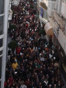 Los ciudadanos de la Isla se echaron a la calle para reclamar su hospital y fueron unas 5000 personas las que discurrieron pacíficamente desde la puerta del hospital hasta la Plaza del Rey. Con una cabecera de manifestación donde estaban todas las cabezas visibles de la política de San Fernando, plataforma y algún que otro estamento, la marcha discurrió por las calles de la Isla donde se iban uniendo más personas a las que ya iban en el grueso de la misma.