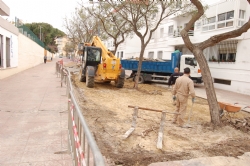 Obras en la calle que sirve de entrada a los colegios Reina de la Paz y Raimundo Rivero