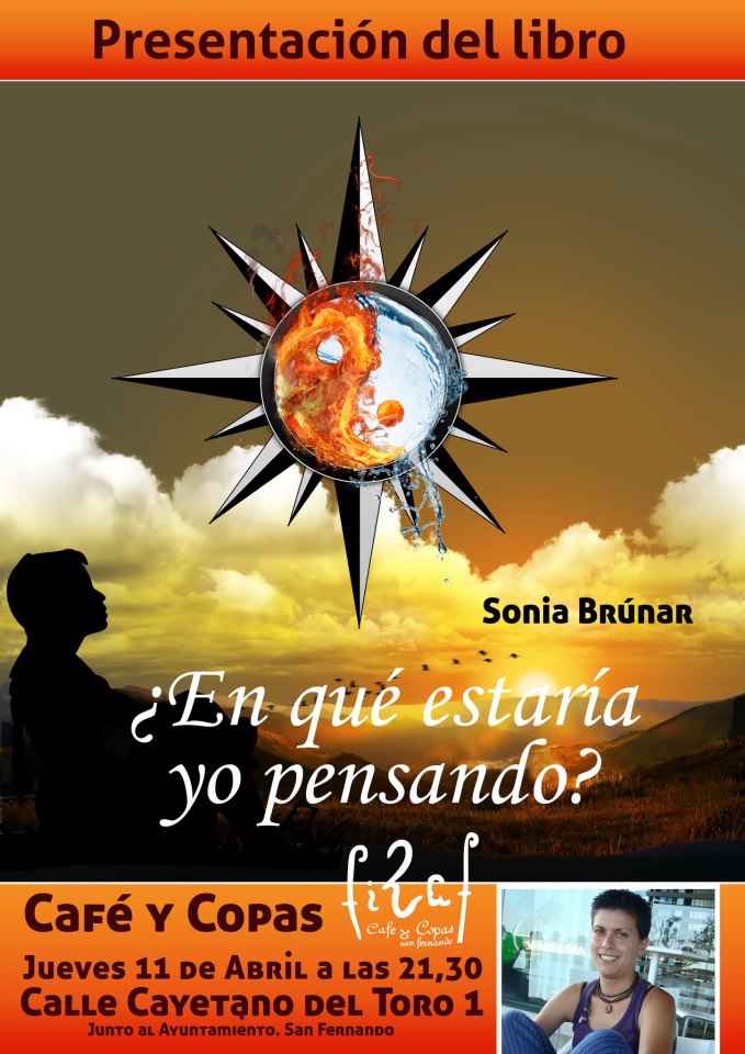 Sonia BrúnarMañana jueves 11 de abril, a las 21:30 en el bar FiRaf en la calle Cayetano del Toro nº1, tendrá lugar la presentación  del libro “¿En qué estaría yo pensando?” de “Sonia Brúnar”. Sonia Fernández Carbal, nombre real de la escritora isleña, juega con los dos apellidos de su abuela mezclándolos para dar lugar al sobrenombre artístico. “Brúnar”, que empieza a sonar y no solo en la Isla, acompañando a Sonia en toda su obra dedicándosela a su queridísima abuela. Desde muy pequeña Sonia, escribía para ella, como todo buen escritor que se precie, hasta que  llegó la hora de mostrar al mundo sus sentires y pensares. Aunque vive en San Fernando trabaja días sueltos de camarera en la conocidísima Cafetería Parisien, ubicada en la Plaza San Francisco en Cádiz. Colabora en las “Tertulianas Literarias” en el programa de Onda Cádiz Radio todos los miércoles en el espacio dedicado a la lectura. Acompañada de la también escritora Palma Medinay de la periodista Isabel Maneiro, programa  presentado por el  ya  seguidor suyo, el periodista Guillermo Riol”. “Sonia Brúnar”, viene de una familia volcada en el arte de las palabras, de madre poeta y hermanos inmersos en la lectura, hacen que ella sea conocedora  del género literario desde pequeña. “¿En qué estaría yo pensando?” es su primera novela editada, curiosamente empieza a ser escrita por el final. El libro consta de tres partes, y ella desde el principio tenía claro el desenlace. Poco a poco fluyeron las palabras dando lugar al comienzo y la trama de la historia. Narra la historia de Silvia, una chica isleña de 30 años, que vive y ama Cádiz, sus playas y su sierra. Lares donde trascurren todas las adversidades, vivencias, dudas, sentimientos encontrados, buscando su camino y felicidad. Los lectores del libro de manera contundente declaran que ven a Sonia es sus palabras y expresiones. Ella sin negarlo se siente muy orgullosa de poder llegar a plasmar y trasmitir  algo tan poderoso y complicado a la vez, como es el sentir y padecer un arduo camino. Su editorial, "noven publishing"  no se encarga de la difusión ni distribución del libro. Sonia  con mucho esfuerzo y con ayuda de los suyos; familiares, amigos, compañeros, (a los que ella llama "Ángeles"). Por bares como el “FiRaf”, "Pay Pay", la cafetería “Parisien” centro neurálgico sin duda  de la distribución, medios de comunicación como este periódico, canales de radio: “Onda Cádiz Radio” en sus tertulias  y “Todo Bahía Radio” donde mañana a las 10.30 tiene una entrevista, etc… son los que hacen posible dar a conocer esta magnífica novela. Mañana en el “FiRaf” presentará su libro, lugar donde dedicará con hermosas palabras a todo lector que aprecie y compre su novela. También está a la venta y apoyando a Sonia en las  librerías gaditanas: “Quorum Libros”, “Las Libreras”  y “Alejandría” o en Granada  las  librerías “Babel” con un precio de 18,90€. El bar “FiRaf” participa activamente en muchos eventos culturales, ésta vez le ha tocado al mundo de las letras. Desde hace más de un mes, todos los lunes han tenido una Tertulia Literaria a las 16.00, donde el bar ha invitado a un café prestando varios ejemplares de "¿En qué estaría yo pensando?" para su lectura. "Sonia Brúnar", Maestra de Educación Física y Licenciada en Psicopedagogía, amante de las letras, nos quiere mandar un mensaje de  244 páginas. Blogspot de Sonia.