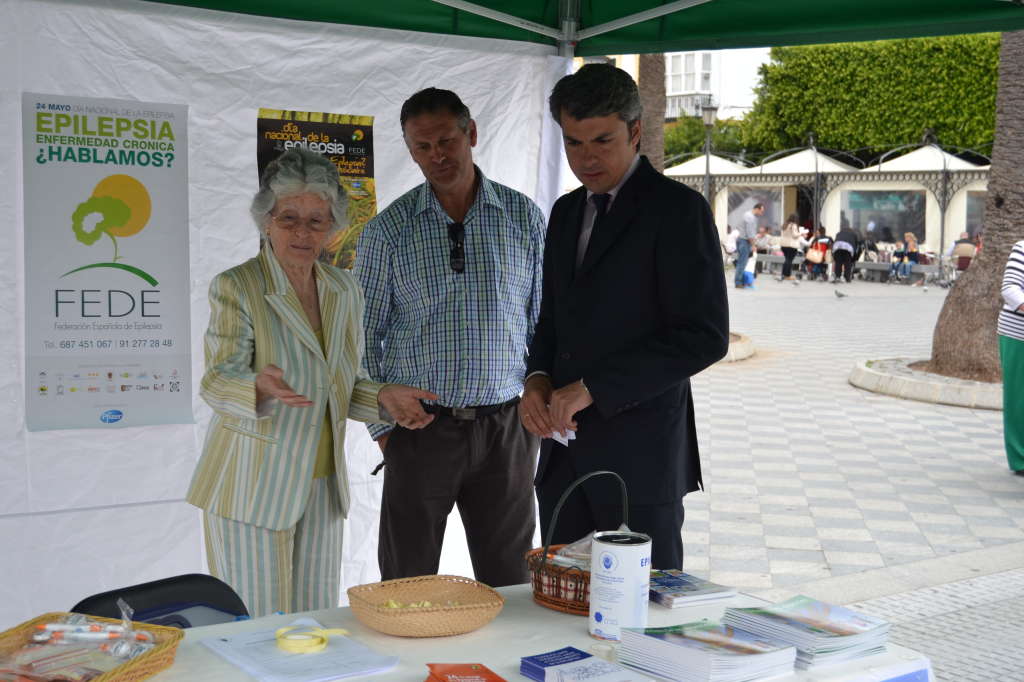 El primer Secretario del Comité Local del Partido Andalucista y primer teniente de alcalde, Francisco J. Romero, ha visitado esta mañana las carpas que la Asociación de Familiares de Enfermos de Epilepsia (AFEDE) ha instalado esta mañana en la Plaza del Rey y en la Alameda Moreno de Guerra con motivo del Día Nacional de la Epilepsia, que se celebra hoy, 24 de mayo. Romero explica que el objetivo de AFEDE durante esta jornada es el de acercar y dar a conocer a los isleños e isleñas los síntomas, las características y el correcto tratamiento de la epilepsia, una efermedad que para muchos es desconocida. “Hoy venimos a la Plaza del Rey y a la Alameda Moreno de Guerra para poner voz y rostro a una enfermedad invisible y desconocida para muchos: La Epilepsia. La Asociación de Familiares de Enfermos de Epilepsia sigue adelante con su impagable labor de apoyar y atender a las familias afectadas por esta terrible enfermedad y hoy lo hacen desde la información y desde el conocimiento de la misma. A este colectivo no se le escapa que la información es la herramienta más útil en la prevención y la lucha contra esta dolencia y que también es el camino más directo y rápido hacia la integración de estos enfermos en la sociedad. Din ir más lejos, bastan unas sencillas nociones para afrontar con éxito un episodio de epilepsia en plena calle o en el aula de un centro escolar”, indica el líder andalucista.
