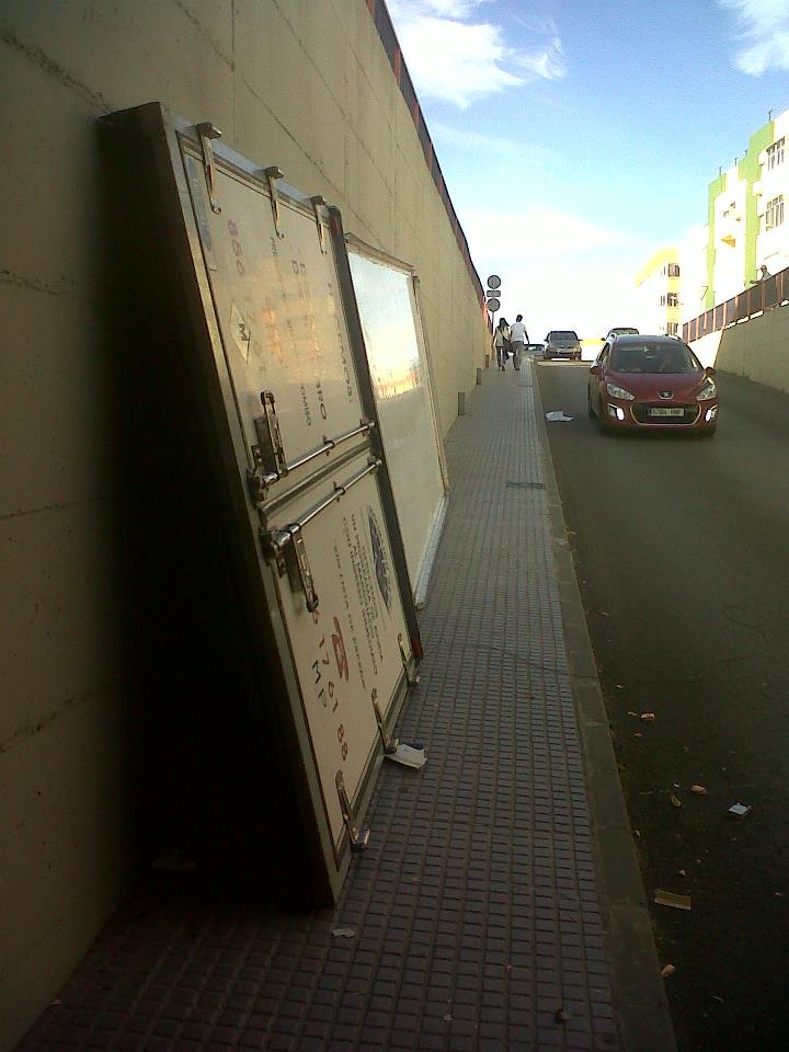 Por un exceso de vista o un mal cálculo,se dejó el conductor de una furgoneta parte de su vehículo en el túnel que pasa bajo la variante y une Carlos III con El Boquete.En la foto podemos ver el portalón trasero y parte del techo del vehículo que sólo provocó algunos "desconchones" en el túnel, pero sin daños personales.Lo que no sabemos es si pudo seguir con un modelo "descapotable".