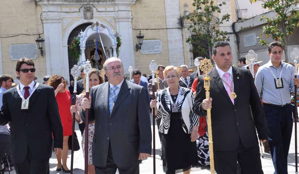 El alcalde de San Fernando, José Loaiza, junto con la teniente de alcalde de Fiestas, Cristina Arjona, y la delegada municipal de Servicios Sociales, María José Moreno Subirana, además del primer teniente de alcalde, Francisco J. Romero han despedido en la mañana de hoy a los romeros de San Fernando que emprenden su camino hacia la aldea de El Rocío. El regidor tomó parte a primera hora de la mañana en la tradicional misa de romeros celebrada en la Parroquia de la Sagrada Familia, lugar desde que partió la comitiva tras el Simpecado para visitar la Iglesia del Carmen, para presentar sus respetos a la Patrona, y la Iglesia Mayor, para hacer lo propio con el Patrón, San José.