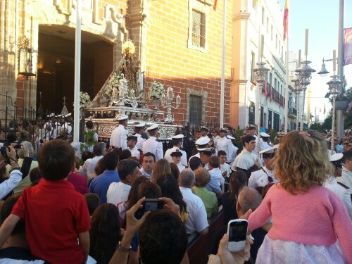 La procesión ha estado compuesta por los pasos de San José, la Virgen del Carmen Coronada y la custodia con el Santísimo Sacramento. La Banda Municipal de San Fernando abría la procesión y la de Infantería de Marina la cerraba con una compañía de honores.OLYMPUS DIGITAL CAMERA