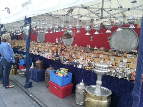El V Mercado del Bicentenario que promueve la Asociación de Comerciantes de San Fernando-Isla Comercio se prepara para abrir sus puertas este viernes en la calle Real.  Esta tarde ya había incluso a algunos puestos captando la atención del público.