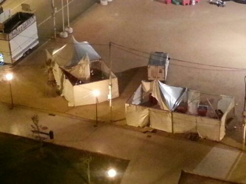 Noche desoladora y triste la que respira el recinto ferial de la CaserÃa, en el que anoche miles de personas vivieron el dÃa más importante la velada de Juan y Juana. El fuerte viento de levante ha destrozado al menos dos carpas, de las ocho instaladas, de ahà que esta mañana se optara por suspender los actos previstos para hoy, con excepción de la misa en honor de San Juan.
