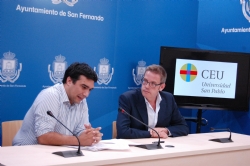 El teniente de alcalde de Presidencia y Ciudadanía del Ayuntamiento de San Fernando, Daniel Nieto, junto con el profesor Francisco Glicerio Conde Mora presentaron el programa formativo y cultural ‘Isaac Peral y la Navegación’, curso de verano organizado por la Universidad San Pablo CEU en colaboración con el Consistorio isleño y que entre el 1 y el 5 de julio reunirá en San Fernando a un elenco de investigadores y estudiosos de la figura y la obra de Isaac Peral que disertará sobre la gestión, desarrollo y trascendencia del primer submarino de la historia, que nació en el Astillero del Arsenal y fue en las aguas de la Bahía de Cádiz donde navegó sus primeras millas. Estas jornadas divulgativas se van a celebrar en el Centro de Congresos Cortes de la Real Isla de León.