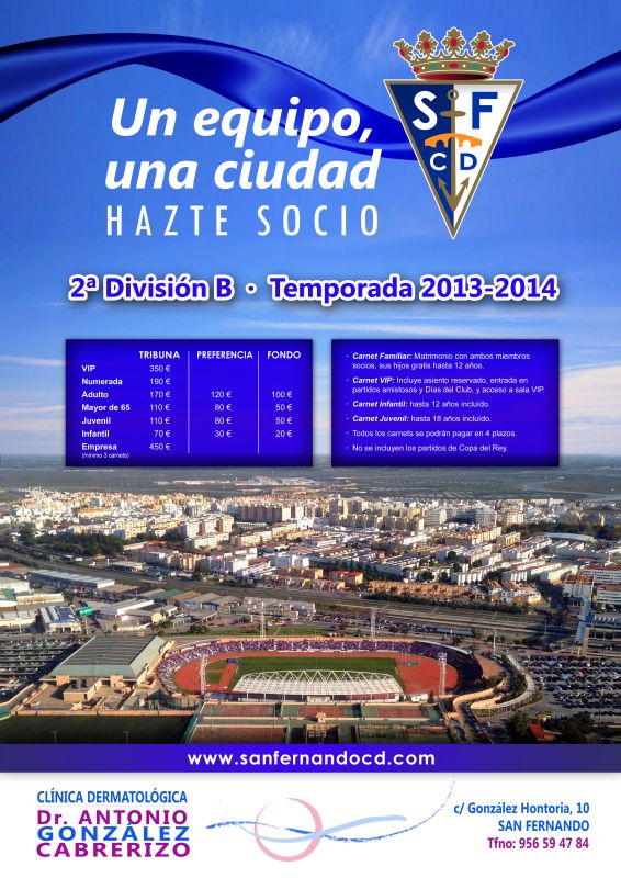 Presentada la Campaña en el Iberoamericano de captación de Socios con el lema "Un equipo,Una Ciudad" del San Fernando C.D. Comienza la campaña con la que se espera aumentar la masa social con precios similares, si no menores, a los de la pasada temporada.