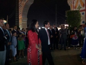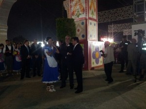 El público ya estaba en el ferial desde bastante tiempo antes de que la comitiva llegara para la inauguración y el encendido del alumbrado.Alumbrado que este año cuenta de nuevo después de un año ausente,con la portada de nuestra feria,en ella se congregó el público para poder ver el izado de banderas y el "pistoletazo" de salida para esta Feria 2013.Le entrada del ferial se veÃa pobre porque casetas que siempre estuvieron ahÃ,este año por motivos de crisis no se han montado,menos mal que en la rotonda principal,el salinero y la salinera daban otro aire.Por lo demás la asistencia de público fue aceptable dado que ayer y hoy son dÃas laborables.
