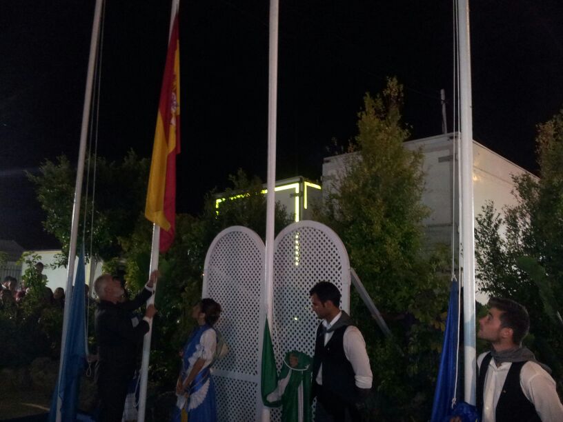 El público ya estaba en el ferial desde bastante tiempo antes de que la comitiva llegara para la inauguración y el encendido del alumbrado.Alumbrado que este año cuenta de nuevo después de un año ausente,con la portada de nuestra feria,en ella se congregó el público para poder ver el izado de banderas y el "pistoletazo" de salida para esta Feria 2013.Le entrada del ferial se veÃa pobre porque casetas que siempre estuvieron ahÃ,este año por motivos de crisis no se han montado,menos mal que en la rotonda principal,el salinero y la salinera daban otro aire.Por lo demás la asistencia de público fue aceptable dado que ayer y hoy son dÃas laborables.