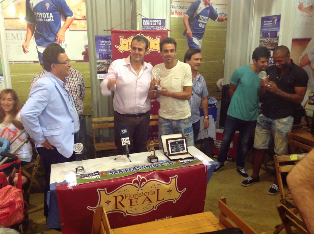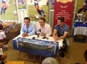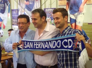 Un poco más tarde sobre el horario previsto el nuevo fichaje azulino, Bernardo de La Cruz Calero, "Berni" en el mundo futbolístico, hizo acto de presencia en el Real de la feria isleña, más concretamente en la caseta del San Fernando C.D., donde junto a Dani Luna y Cristóbal Marín fue presentado tanto a los medios como al centenar de aficionados que se dieron cita en el lugar.