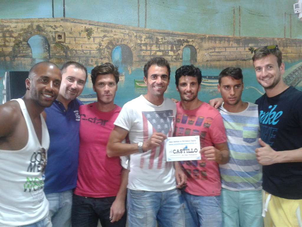 Los jugadores del San Fernando con el Castillo en el "Bodegón AndalucÃa"
