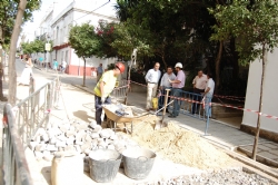 El alcalde de la ciudad, José Loaiza, ha querido comprobar de primera mano el desarrollo de los trabajos de reparación que Aquagest viene realizando desde que el pasado sábado se detectó una avería en este tramo concreto de la red. Las obras consisten en la reposición de un tubo de 250 mm, así como el arreglo de los adoquines y del acerado afectado. Las obras de reparación están bastante avanzadas, si bien la calle Colón deberá permanecer cortada al tráfico hasta el próximo fin de semana. Por este motivo, el alcalde de la ciudad, José Loaiza, pide paciencia a los vecinos y lamenta las molestias que estas obras les puedan ocasionar. “Confíamos en que muy pronto se solucione el problema y la calle Colón vuelva a la normalidad”, ha declarado.