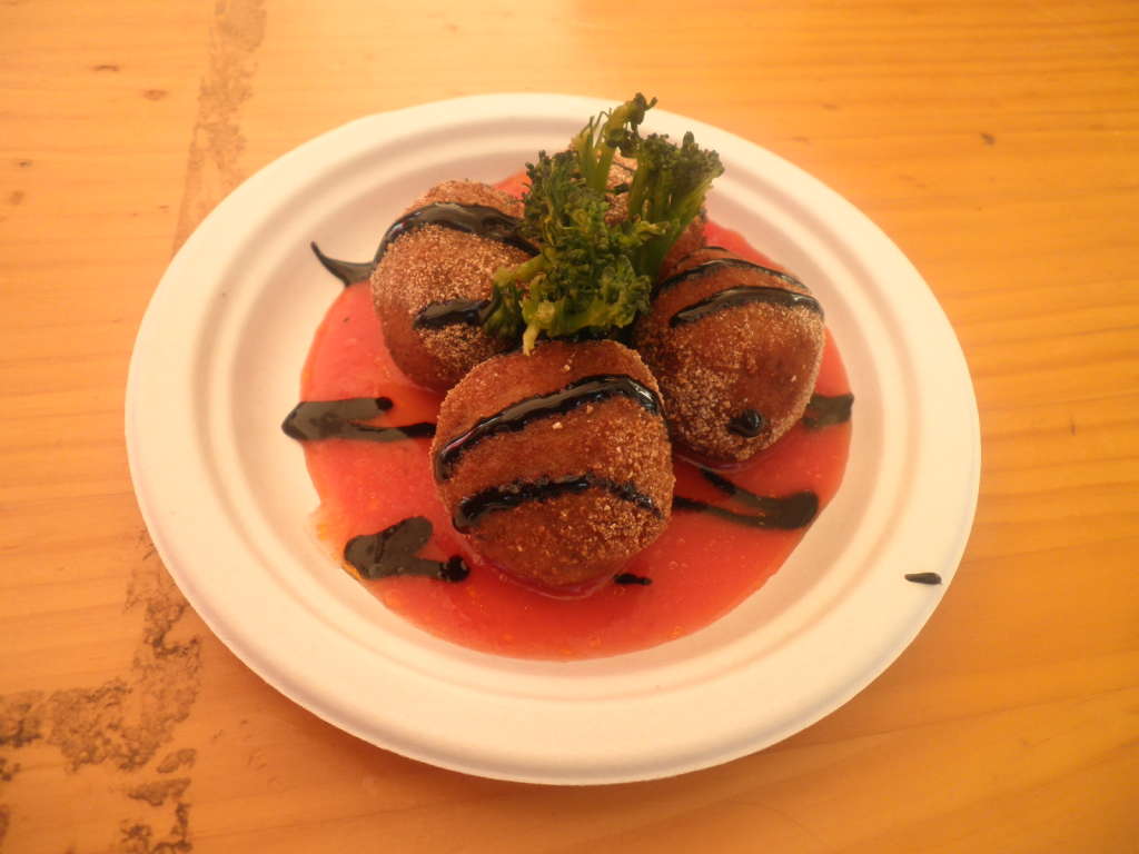 Con unas "Albóndigas de berenjenas con queso de cabra en tomate casero", se presentó el Asador serrano en la Feria de la Tapa con muy buena aceptación por nuestra parte y del numeroso público que allí se congregó. Destacamos su presentación que a pesar de ser de circustancias por el plástico como era obligado en dicho evento, fue de las mejores.¿La probaron?