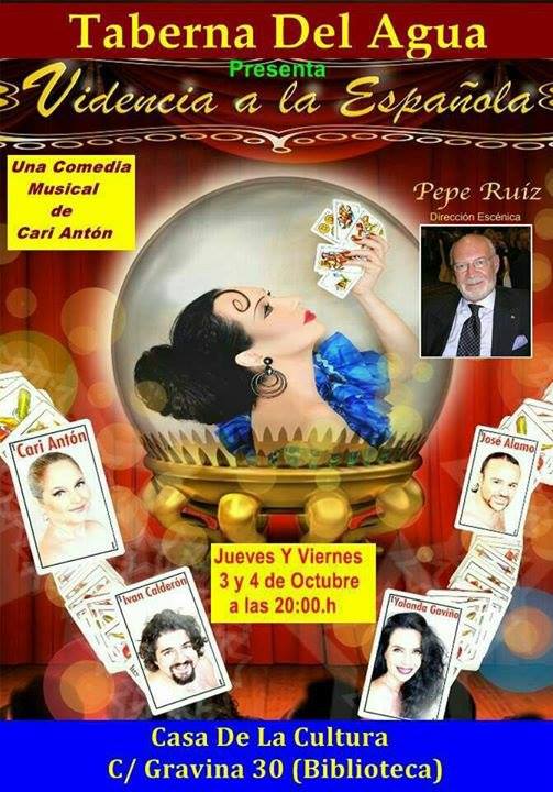 En Octubre los días 3 y 4 tendrá lugar en” La Casa de la Cultura” en la Calle Gravina nº 33 la Comedia “ Videncia a la Española” dirigida por "Pepe Ruiz" (Avelino en la teleserie Escenas de Matrimonio, Matrimoniadas y también conocido por Noches de Fiesta)