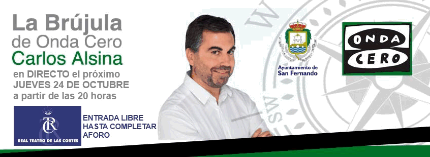 El programa nocturno de análisis de Onda Cero Radio 'La Brújula', que dirige Carlos Alsina, emitirá esta noche su espacio radiofónico en directo, desde el Real Teatro de Las Cortes con motivo del Bicentenario del Título de Ciudad. Este programa, dedicado a la efeméride isleña, contará con la presencia del alcalde de San Fernando y presidente de la Diputación Provincial de Cádiz, José Loaiza.