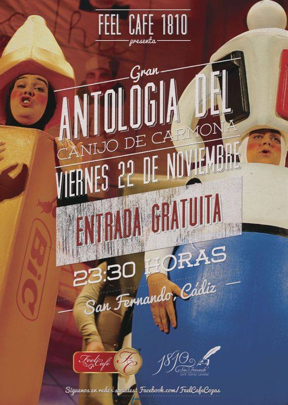 "Feel Café" hoy viernes 22 a las 23.30h, presenta La Antología del Canijo de Carmona, dirigida por el Canijo y Tino Tovar. Fue un antes y después en el COAM del Gran Teatro Falla. Entrada gratuita hasta completar aforo.