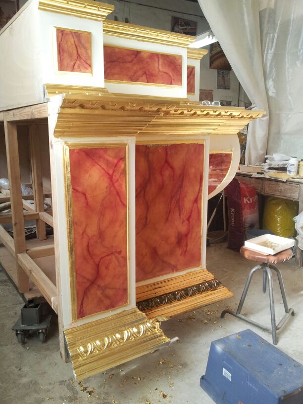 dorado altar miguel santana 28 de noviembre 2013El dorado del nuevo altar de los titulares  del Gran Poderse encuentra ya en su última fase y será ya en el mes de diciembre cuando este definitivamente en la Parroquia de la Sagrada Familia. La cofradía valora el "muy buen trabajo el que esta realizando el dorador Miguel Santana Morato que esta logrando realzar si cabe mas la obra de este altar".